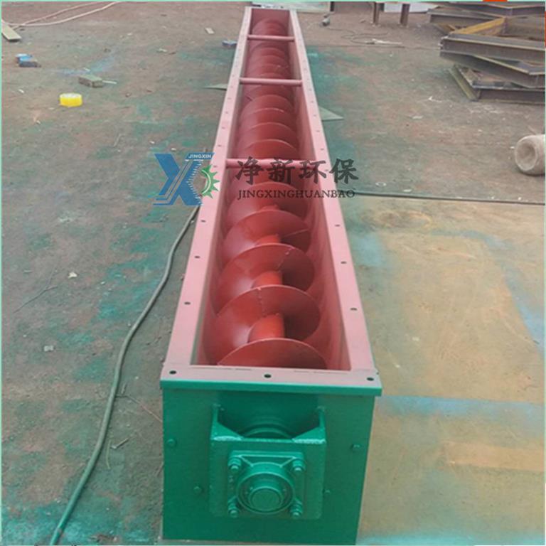 螺旋输送机通常由螺旋机本体、进出装置、驱动装置三大部分组成。螺旋机本体由头节、中间节、尾节三种组成。一般情况下,出厂总装时将中间节按长度长短依次排列,_长的中间节靠近头节,相同 长度的中间节则挨在一起,如果有特殊要求,则在订货时给出排列顺序。在头节内装有支推轴承承受轴向力,在中间节和尾节内装有用轴承支承螺旋轴,此外,在尾节内还装有可轴向移动的径向轴承以补 偿螺旋轴长度的误差和适应温度的变化。螺旋面的形式有实体螺旋(S制法)和带式螺旋(D制法)两种。各螺旋轴之间采用法兰式联接, _了联接轴的互换性,便于维修。机盖为瓦片式并用盖扣夹紧在机壳上,若需改进密封性能,用户可自行在机盖与机壳间加防水粗帆布。进、出料装置有进料口,方型出料口,手推式出料口,齿条式出料口四种。由用户在使用现场在机体上开口焊接。布置进、出料口 位置时应注意_料口至端部的距离,同时避免料口与吊轴承加油杯、机壳联接法兰、底座等相碰。
